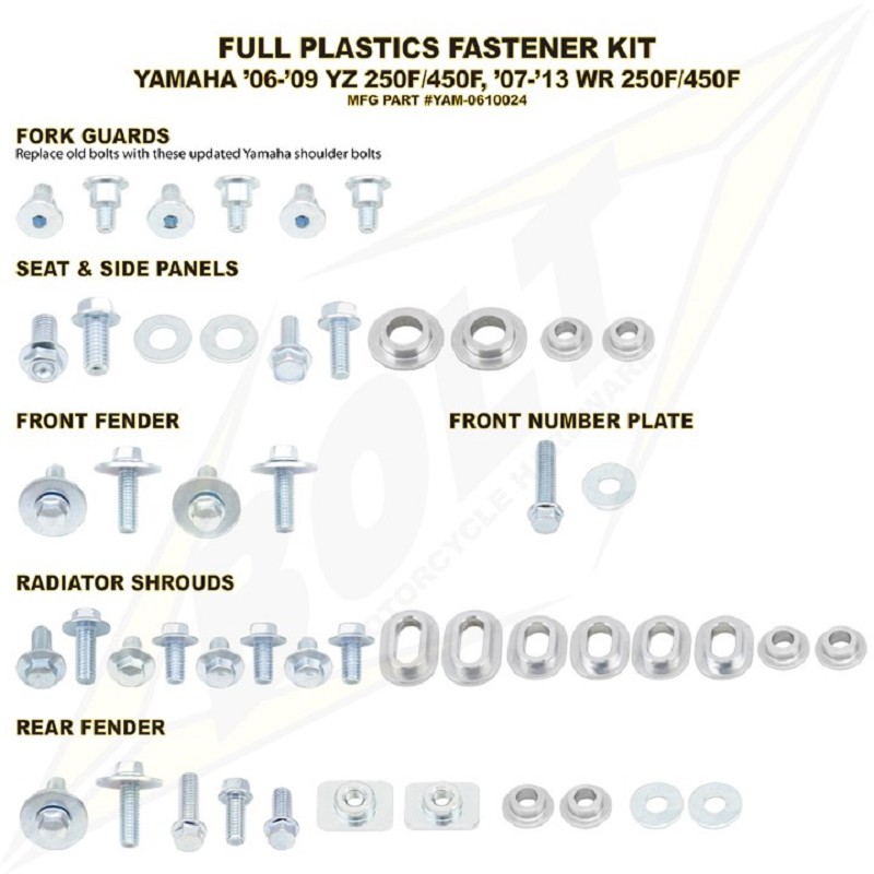 BOLT Full Plastic Fastener kit YZF250 01-02 / WRF250 01-02 / YZF400 98-99/ YZF426 00-02 / WRF400 99-00 / WRF426 01-02