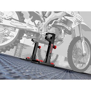 The “Lock-N-Load” Moto Anchoring System securely holds your motocross bike into your trailer without the use of tie-down straps, floor anchors or wheel chocks. It takes an enormous amount of pressure off of the fork seals during transit, and it frees up valuable space allowing the transport of more motorcycles or gear. Additionally, the Lock-N-Load can quickly be removed from the trailer floor by unscrewing the 4 thumb screws leaving only the low profile mounting plates. Each plate has a “D” ring for additional anchor points on your trailer floor. To operate the Lock-N-Load, rotate the knobs into the lock position and simply roll or ride your bike into the trailer until your foot pegs hit the open jaws of the Lock-N-Load. Then step on the upper jaws and they will automatically lock into place. To release your bike, simply rotate the knobs into the release position and step on the top jaws. This will automatically release the jaws and free your motorcycle. For additional safety, insert the attached locking pins prior to transport. You can replace the locking pins with pad locks for added security and a theft deterrent.