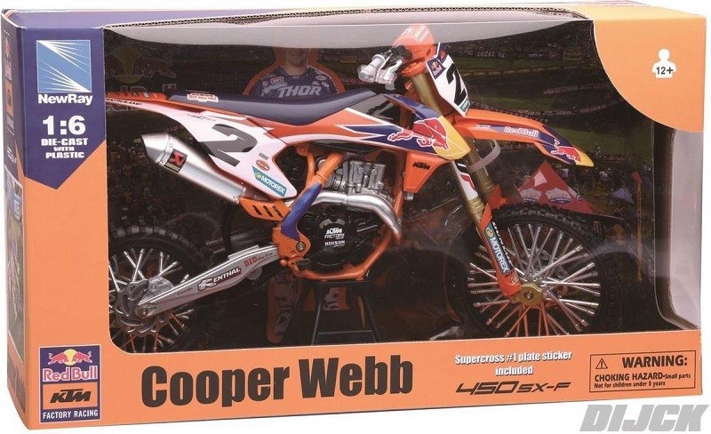 NewRay Cooper Webb Red Bull KTM SXF450 Toy Model MAAT: 36x20cmReplica Schaal 1:6 GROOTSKU: 49683Speelgoed, Crossmotortje