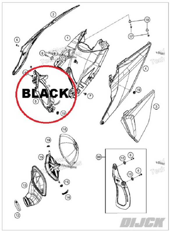 KTM OEM Airbox Front SX125/150/250 19-22 / SXF250/350/450 19-22 / EXC/EXC-F125-500 20-23 / GASGAS MC/MCF/EC/ECF125-450 21-23 BLACK