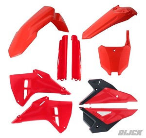 ACERBIS Plastic Kit RED (OEM)HONDACRF250 25-26CRF450 25-26Kit content:- Front Fender Red- Rear Fender Red- Side Panles Red/Black- Radiator Scoops Red- Front Number Plate Red- Fork Guards RedACERBIS Partnumber0026547.553, 0026547553