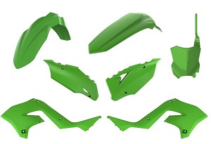 POLISPORT Restyle Kit GREENKawasakiKX125 03-08KX250 03-08Polisport strikes again with a new restyling Kit, now for the Kawasaki 2-strokes. Owners of the KX125/250, from 2003 to 2008, will be able to renew, revive and restyle their motorcycle with this plastic kit. The Kit will bolt directly on the bike's frame and will work with original seat. No changes are needed to completely revitalize your bike and make it look like a 2020 machine. This new Kit includes front fender, rear fender, radiator scoops, side panels and number plate.