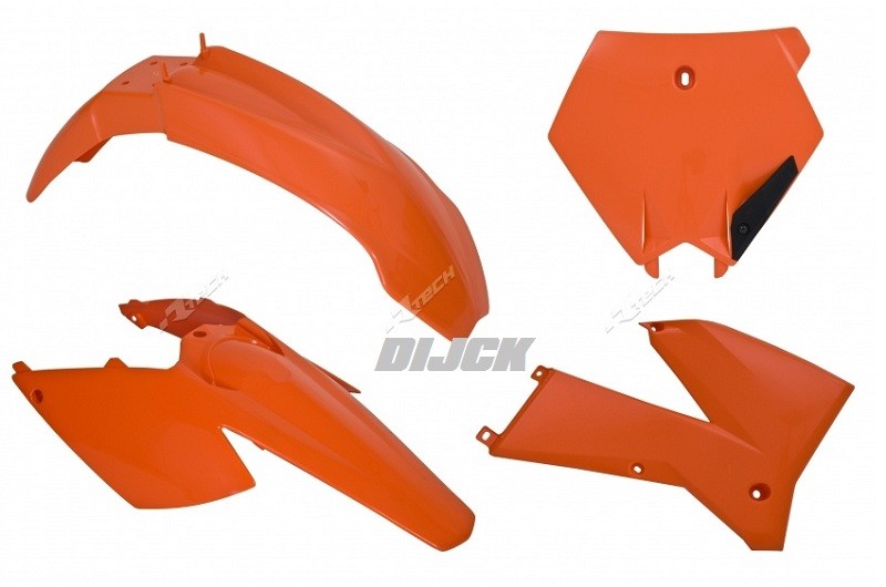 RACETECH OEM Plastic Kit SX+F 05-06/EXC 05-07 - Front Fender Orange - Rear Fender/Sidepanels Orange - Radiator Scoops Orange - Front Number Plate Orange