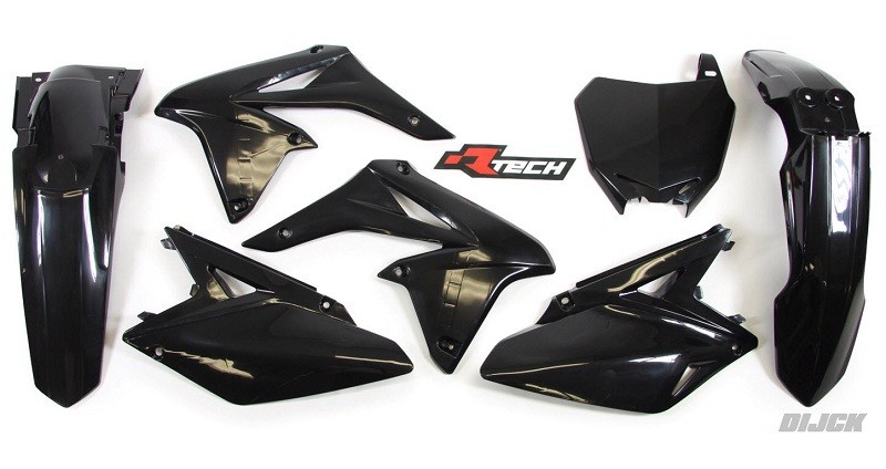 RACETECH Plastic Kit RMZ250 10-18 BLACK - Front Fender Black - Rear Fender Black - Radiator Scoops Black - Side Panels Black - Front Numberplate Black