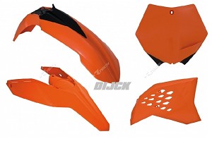 RACETECH Plastic Kit SX+F 07-10 / EXC 08-11 ORANGE - Front Fender Orange - Rear Fender/Sidepanels Orange - Radiator Scoops Orange - Front Number Plate Orange