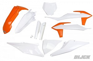 UFO Full Plastic Kit Inclusief VoorvorkkappenWHITE / ORANGEKTM- SX125-150-250 19-22 - SXF250/350/450 19-22 - SXF450 FACTORY EDITION 18-22 - XC-F 250-350-450 19-22 - XC 250-300 19-22Kit bevat de volgende delen:- Airbox Covers / Nummerborden Wit- Radiateurkappen Wit/Oranje- Voornummerbord Wit- Voorspatbord Oranje- Achterspatbord Wit- Voorvrokkappen WitPlastic kit, PlastickitPartnumber: KTKIT522#999X, UKTKIT522OR, KTKIT522999X