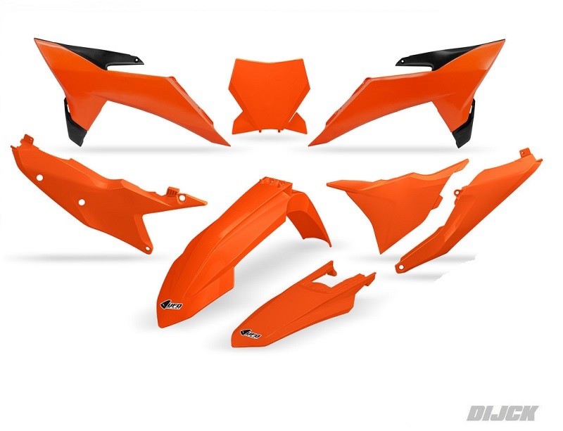 UFO FULL Plastic Kit ORANGEKTMSX125 25-26 SX250 25-26 SX300 25-26 SXF250 25-26 SXF350 25-26 SXF450 25-26 Kit bevat de volgende delen:- Airbox Covers / Nummerborden- Radiateurkappen- Voornummerbord- Voorspatbord- AchterspatbordPlastic kit, PlastickitPartnumber: KTKIT532-999, KTKIT532OR, KTKIT532999, KTKIT532