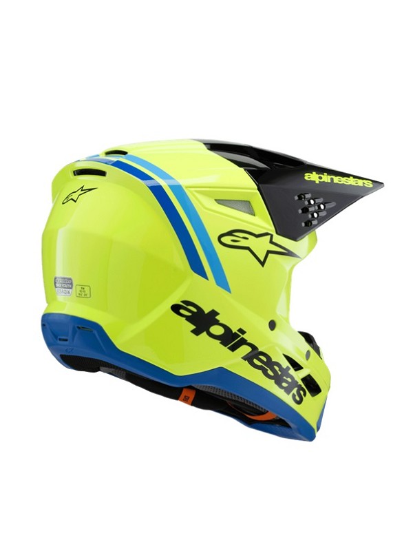 ALPINESTARS SM3 YOUTH Radium Helmet YELLOW FLUO / BLACK / BLUE GLOSSYAnatomically engineered and profiled specifically for youth and younger riders, the all-new SM3 Youth Helmet is optimized for MX, Enduro and Off-road use, and features a whole raft of technologies and innovations taken from Alpinestars range of adult helmets to deliver the optimal blend of performance, protection and comfort. The SM3 Youth weighs 1060 g (ECE)Partnumber: 83019255017