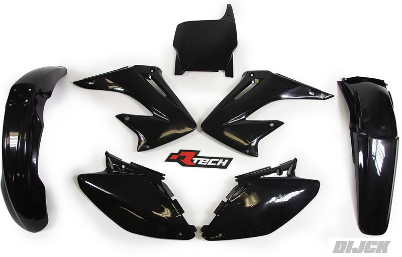 RACETECH Plastic Kit CR125/250 04-08 BLACK - Side Panels Black - Radiator Scoops Black - Front Fender Black - Rear Fender Black - Front Numberplate Black