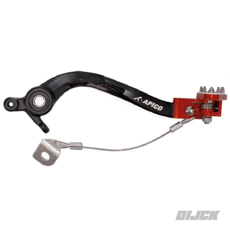 APICO Rear Brake Pedal BLACK With ORANGE TipKTMSX125 23-24SX250 23-24SX300 23-24SXF250 23-24SXF350 23-24SXF450 23-24EXC150 TBI 24-..EXC250 TBI 24-..EXC300 TBI 24-..EXC-F250 24-..EXC-F350 24-..EXC-F450 24-..EXC-F500 24-..GASGASMC125 24-..MC250 24-..MCF250 24-..MCF350 24-..MCF450 24-..EC250 24-..EC300 24-..ECF250 24-..ECF350 24-..ECF450 24-..ECF500 24-..HUSQVARNATC125 23-24TC250 23-24FC250 23-24FC350 23-24FC450 23-24TE150-i 24-..TE250-i 24-..TE300-i 24-..FE250 24-..FE350 24-..FE450 24-..FE501 24-.. Rempedaal, VoetremApico-rempedalen zijn ontworpen en getest op het hoogste niveau. Gefabriceerd van 7075-T6 aluminium en voorzien van een gesmede as van het OEM-type, een geribbelde afwerking op de tip verhoogt de grip.Apico Flexible tips zijn van aluminium gemaakt met roestvrijstalen tandplaat en rubberen insert voor grip. De roestvrijstalen tandplaat biedt betere grip en zal niet slijten zoals aluminium tips die u op de markt kunt vinden.Apico-rempedaaltips bevatten ook een stop op het draaipunt. Hierdoor stopt de tip bij 90 graden rotatie, waardoor schade wordt voorkomen als de punt onder het koppelingsdeksel draait.Apico-rempedalen worden geleverd met een kabelremslang (brake snake), dit voorkomt dat de rempedaal bij een aanrijding wordt gebogen.SKU: BPF509BLACK/ORANGE, BPF509 BLACK/ORANGE