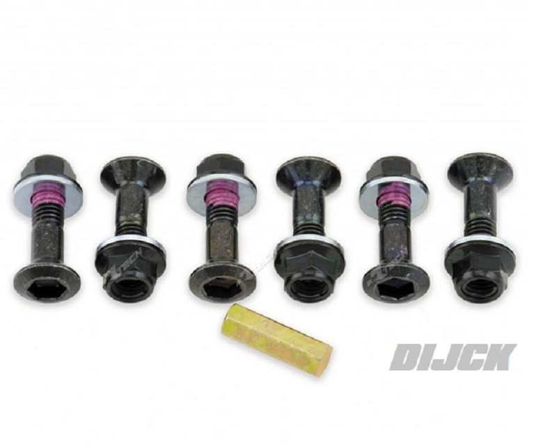 BOLT Sprocket Fastening Kit BLACK (6 pc)ALL Japanese bikesTandwiel bouten en moeren, set van 6 stuks.Tandwielbouten, Tandwielbout- Six class 10.9 steel sprocket bolts with matching Honda CRF factory style metal locking Fuji nuts. - Each sprocket bolt has medium strength threadlock patches for a double lock. - Includes Allen key insert that adapts 8mm t-handle or socket to Allen key for easy installation & removal. - Designed for All Japanese MX models.- Black finish.