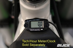 WORKS CONNECTION Hour Meter MountingFor 37-200- CNC’d 6061 T-6 aluminum - Simple installation - Mounting hardware included- Can be mounted on any 6mm bolt (In front of gas tank, on triple clamp, in airbox etc.) In front of gas tank is the most common, although on some bikes that location is not possible. Urenteller Bevestiging